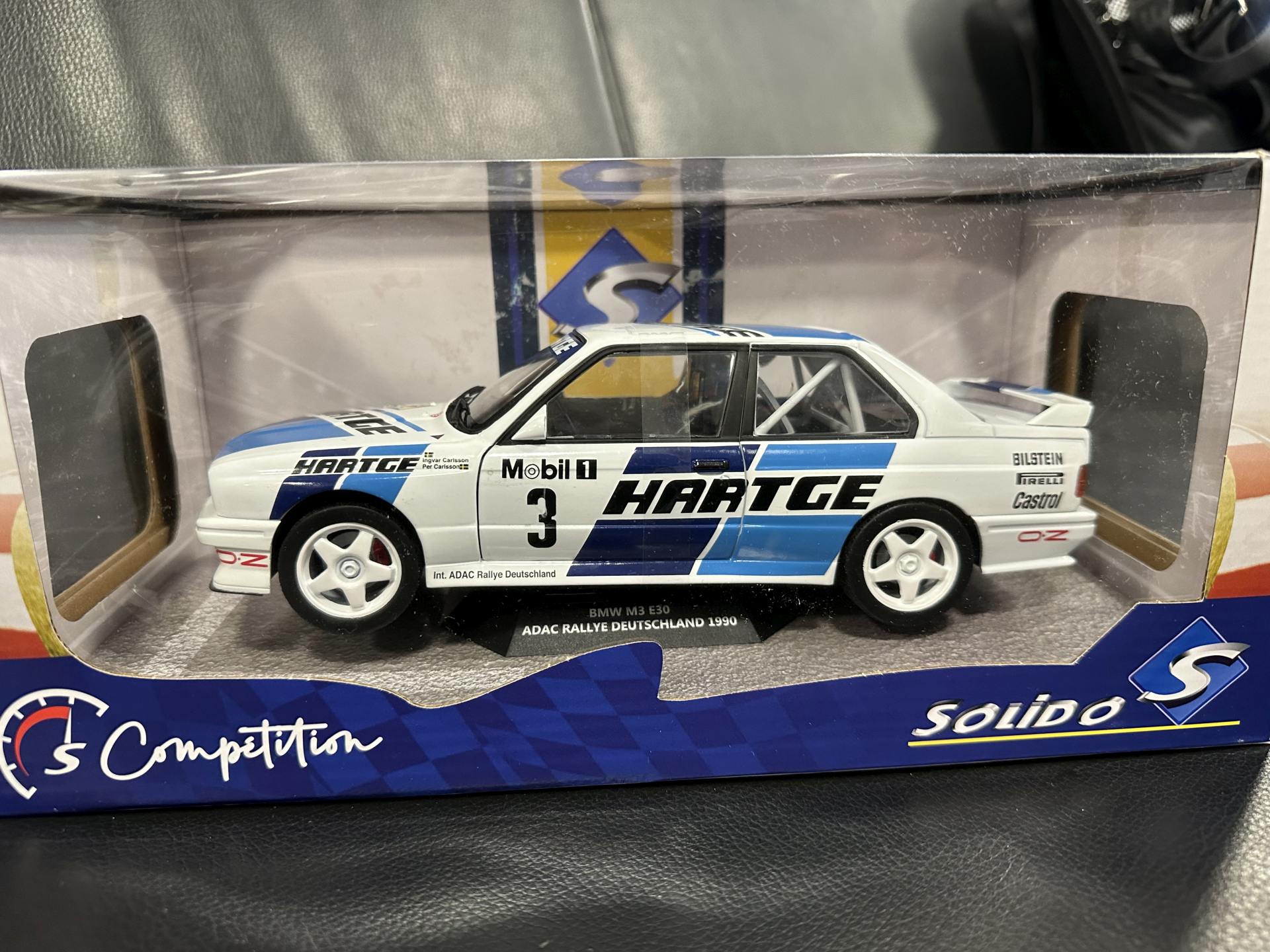 Bmw E30 Hartge Rally Deutschland 1990 white/blue 1:18 Solido S1801514 Бмв Е30 Германия 1990 бял/син